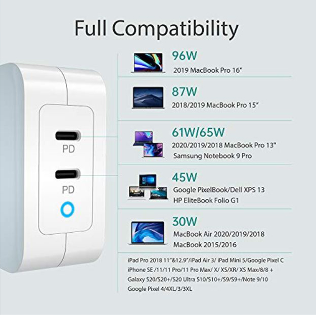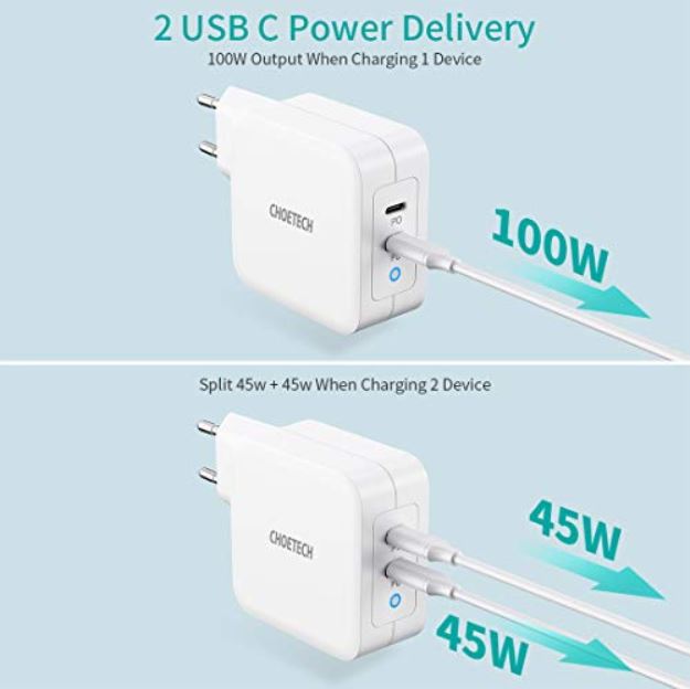 Kroviklis CHOETECH GaN 2xUSB Type-C: 100W PD užtikrina geriausią įkrovimo našumą naudojant GaN (galio nitrido) technologiją. Šis 100W USB C įkroviklis padidina krovimo efektyvumą iki daugiau nei 90%. Dvigubas USB C PD įkroviklis turi Power Delivery 3.0, kuris įrenginius krauna greičiau nei kiti rinkoje esantys krovilkliai.